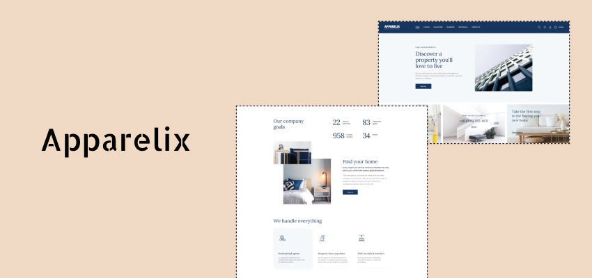 Apparelix is an attractive Shopify real estate theme with customizable pages and ready sections that you can add, edit, or remove. With Shopify visual builder you can design a real estate website of your dreams.